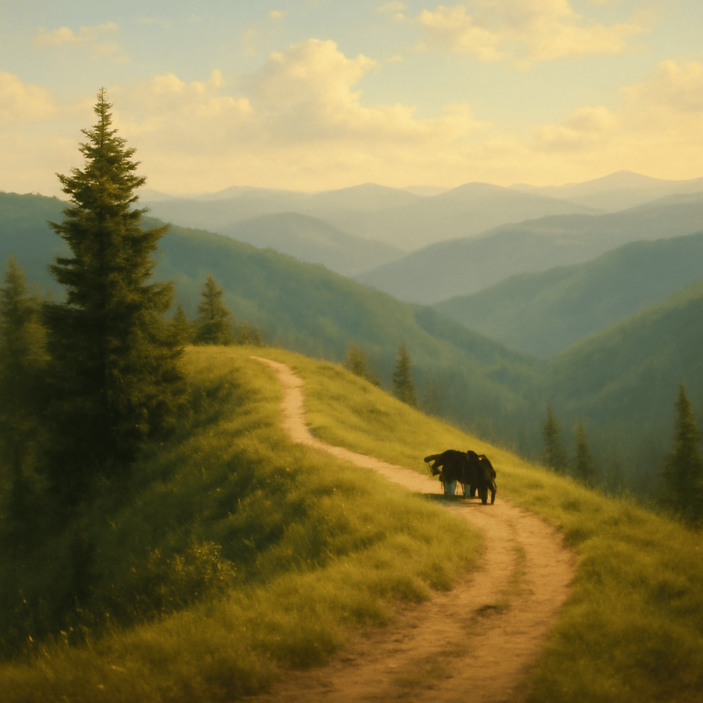 今日は尾根筋をゆっくり散歩してきたんじゃ。風が心地よくて、森の息吹を肌で感じるひとときは何ものにも代えがたいな。少し急な坂道もあり、ドキドキしたが、それだけに見晴らしは最高でのう。散歩のあとは蜂蜜入りのお茶を味わい、やはり自然の恵みは甘くて嬉しいものじゃ。以前、エチオピアの広大な丘陵や静かな古い教会を訪れたときのことも思い出した。あの地の高い空と緑豊かな風景は、臆病なくまの心をも穏やかにしてくれたのう。ニュージーランドの森で見かけたインコたちの鮮やかな羽色も忘れられぬ。彼らのちょっとした仕草に癒されながら、我らは無理せず、自然と共にゆったり生きるのが一番じゃと改めて感じた日じゃった。さて、明日もまたゆっくり歩こうかのう。
